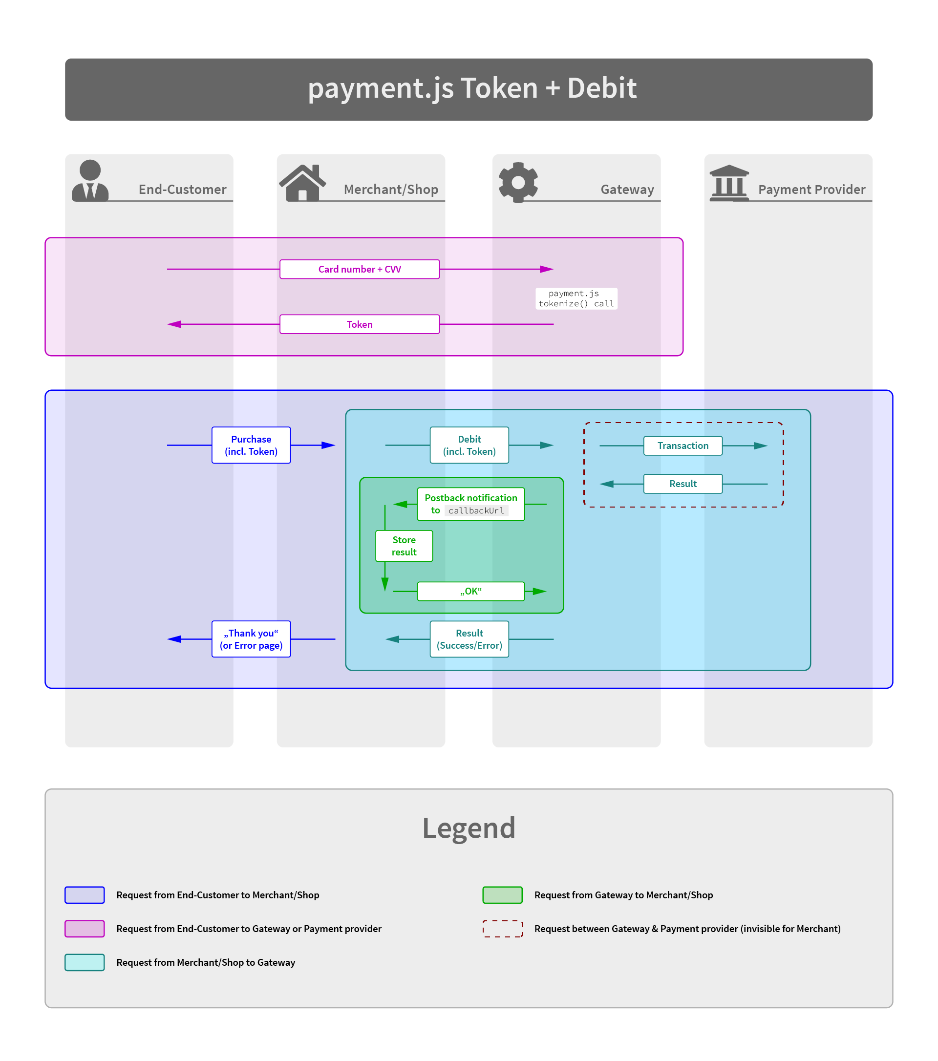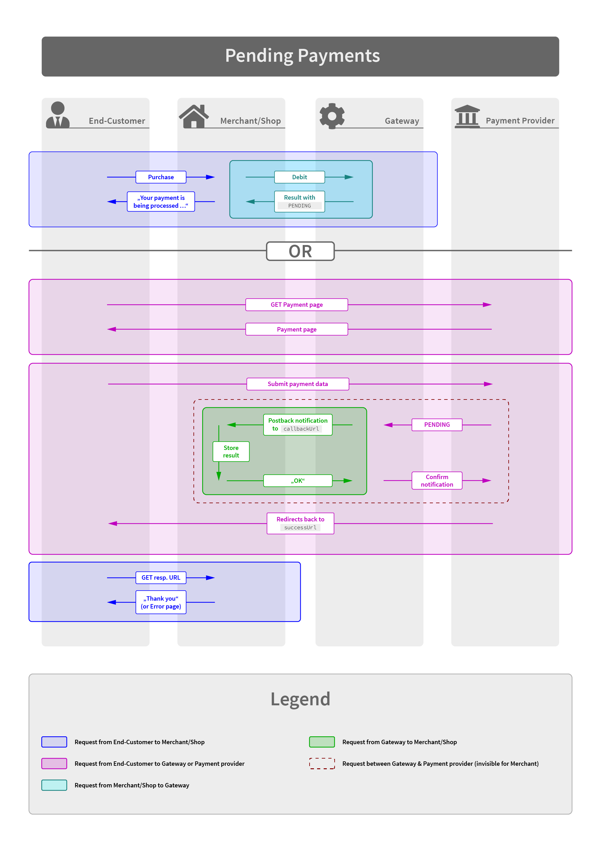 A detailed technical description of the interface can be found in our API Reference documentation - but you should read the Transaction Process chapter first to understand what the different requests are used for.